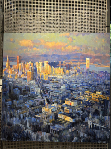 Afternoon Over San Francisco 48 x 48" original oil painting on canvas by contemporary impressionism artist Leon Roulette.